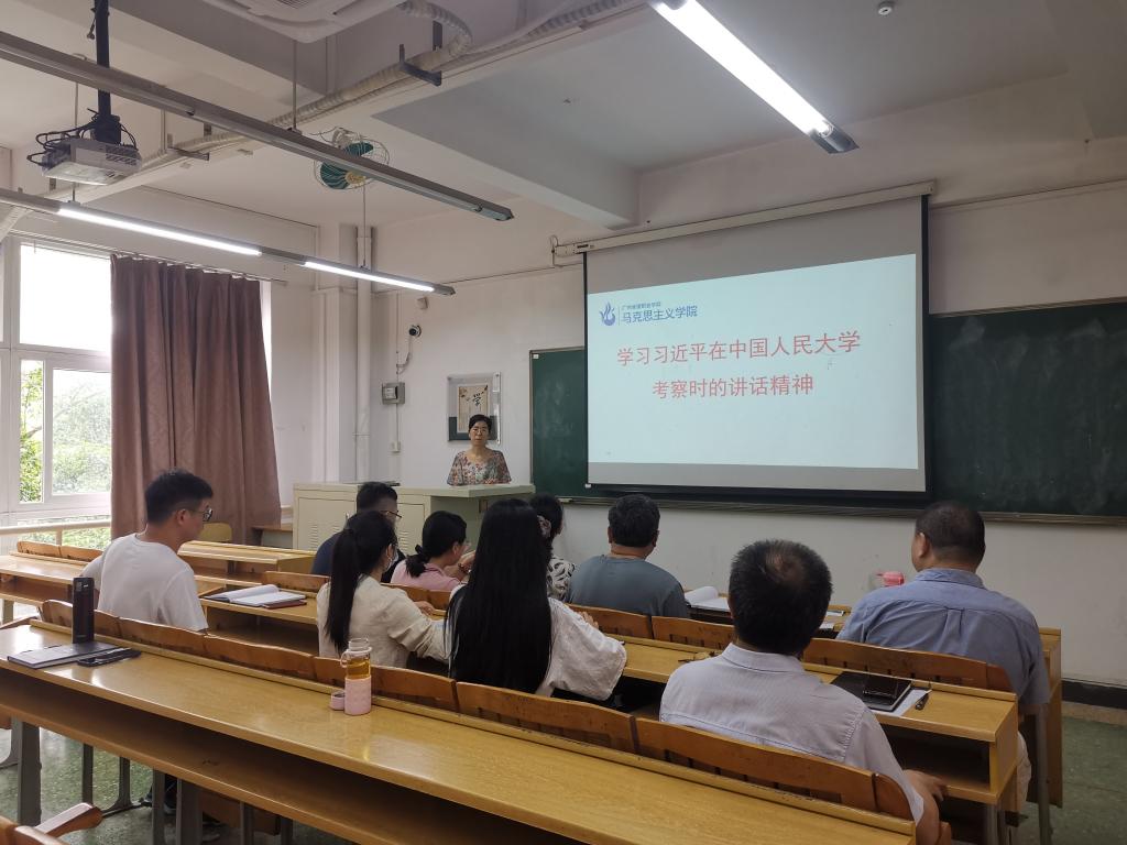 首先王鲜带领大家学习了习近平总书记考察中国人民大学重要讲话精神,她提出希望全体与会人员提高思想认识、强化学习自觉,认真领会习近平总书记重要讲话的精神,强化使命担当,做好为党育人、为国育才工作。