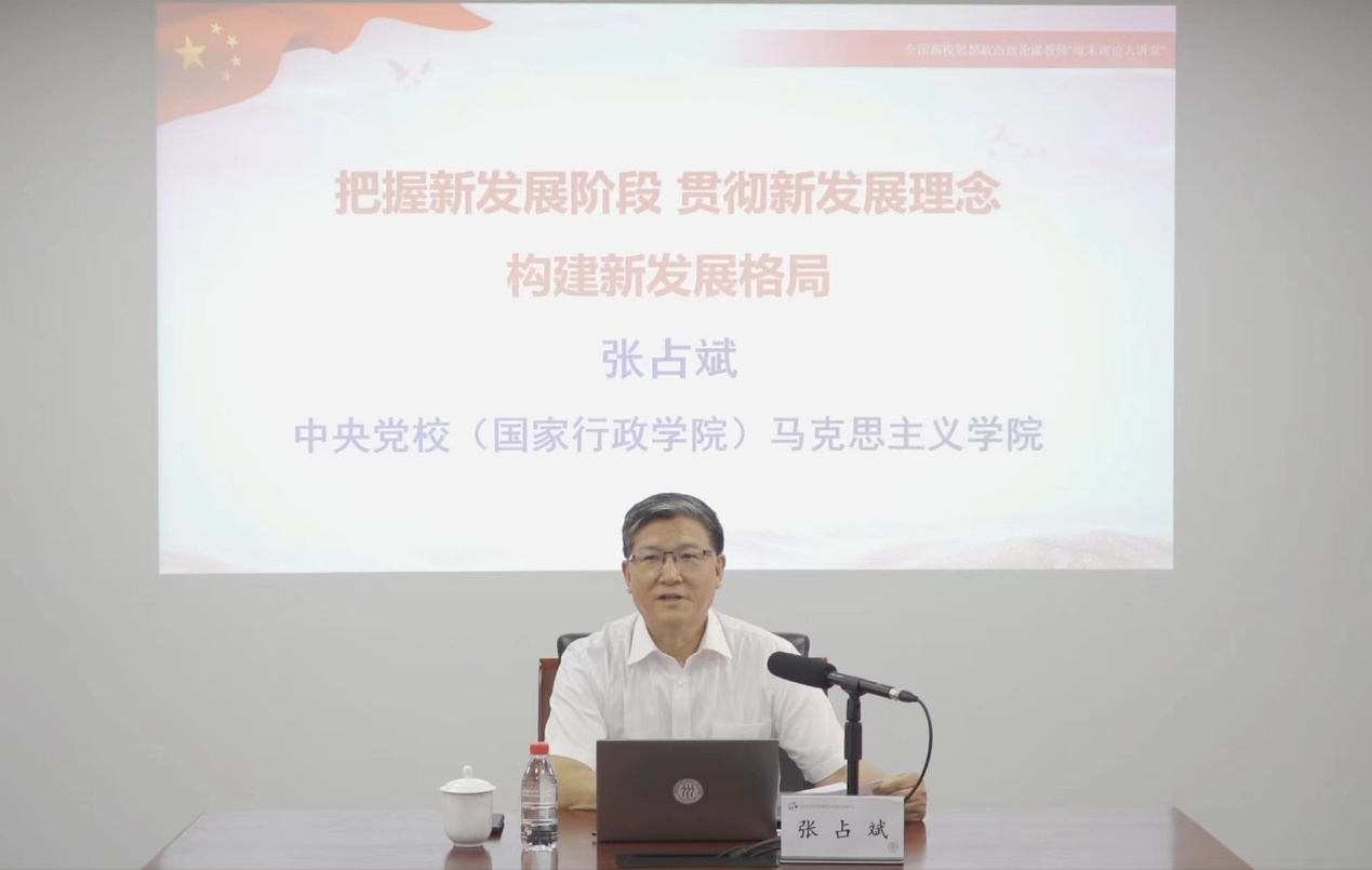 本次大讲堂由第十三届全国政协委员,中央党校(国家行政公司)太阳成集团tyc122cc经理、教授、博士生导师张占斌主讲。张占斌教授结合习近平总书记著作《论把握新发展阶段、贯彻新发展理念、构建新发展格局》,以“把握新发展阶段 贯彻新发展理念 构建新发展格局”为题进行专题导学。他围绕“新发展阶段:开启中华民族伟大复兴新征程”、“新发展理念:引领高质量发展和高品质生活”、“新发展格局:构建相互促进的国内国际双循环”、“三个新发展:中国特色社会主义政治经济学的最新成果”四个方面全面阐释了新发展理念、新发展阶段、新发展格局的深刻内涵、重大意义、内在逻辑以及与我国经济社会发展的深刻联系。